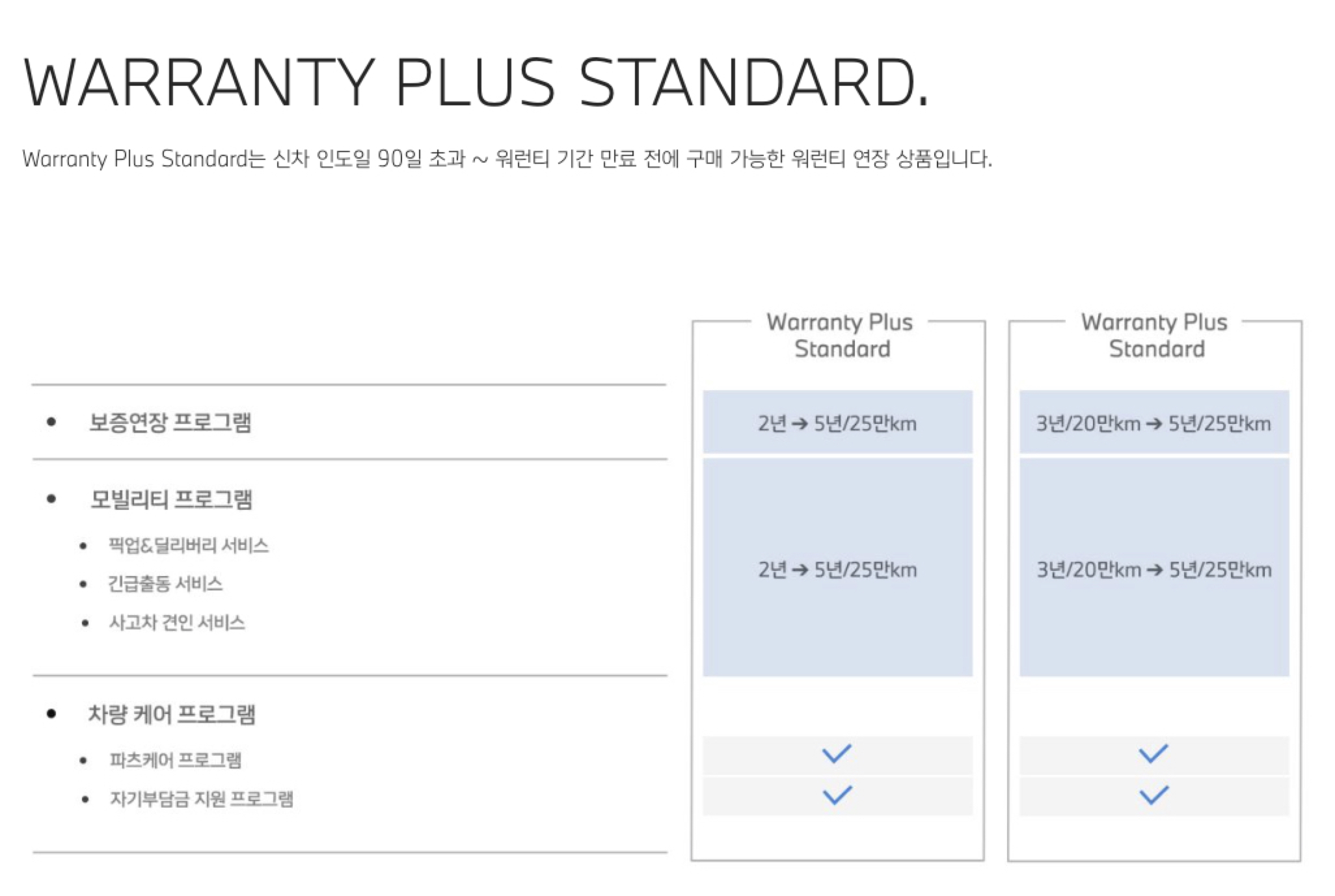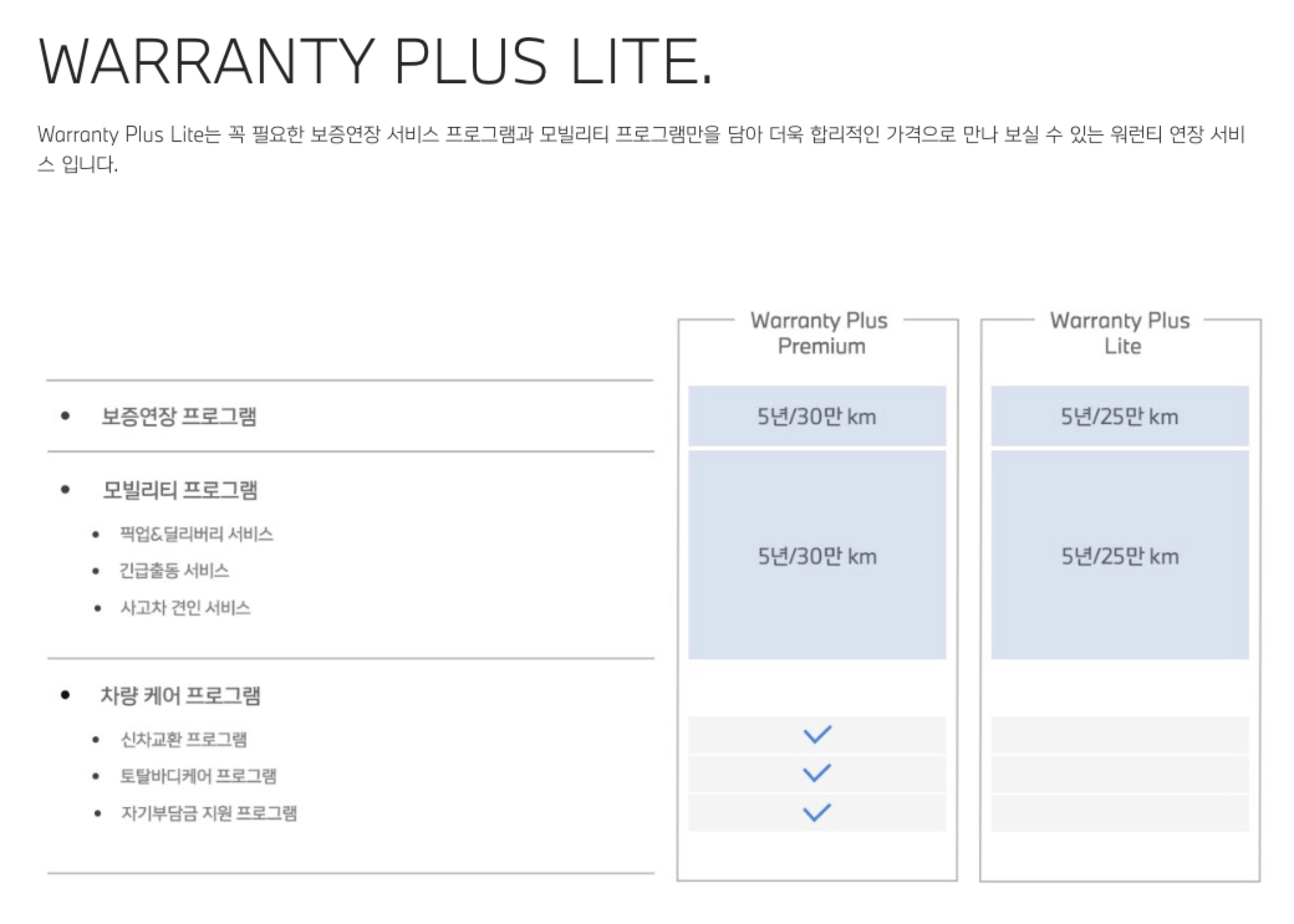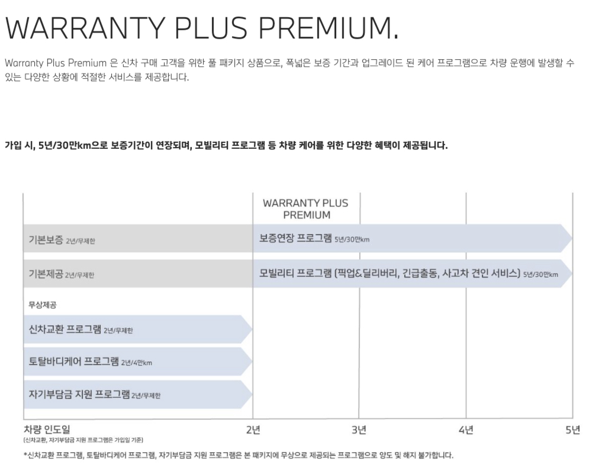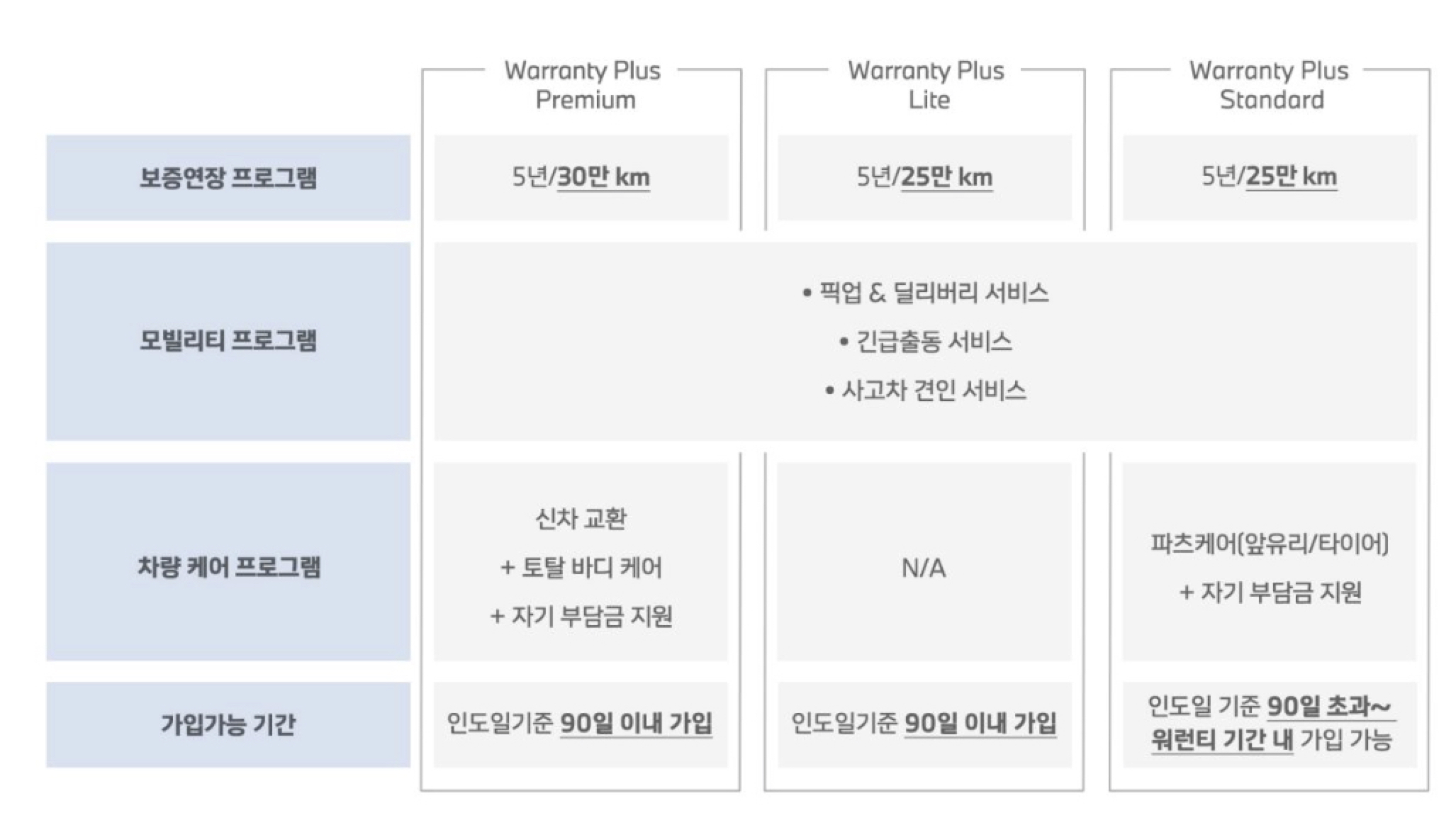 * Warranty Plus Premium/Lite : 신차 인도일 기준 90일 이내 가입가능