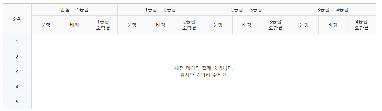 시험 이후 아래 정보 확인 하시고 나의 등급컷 비교 해보세요.